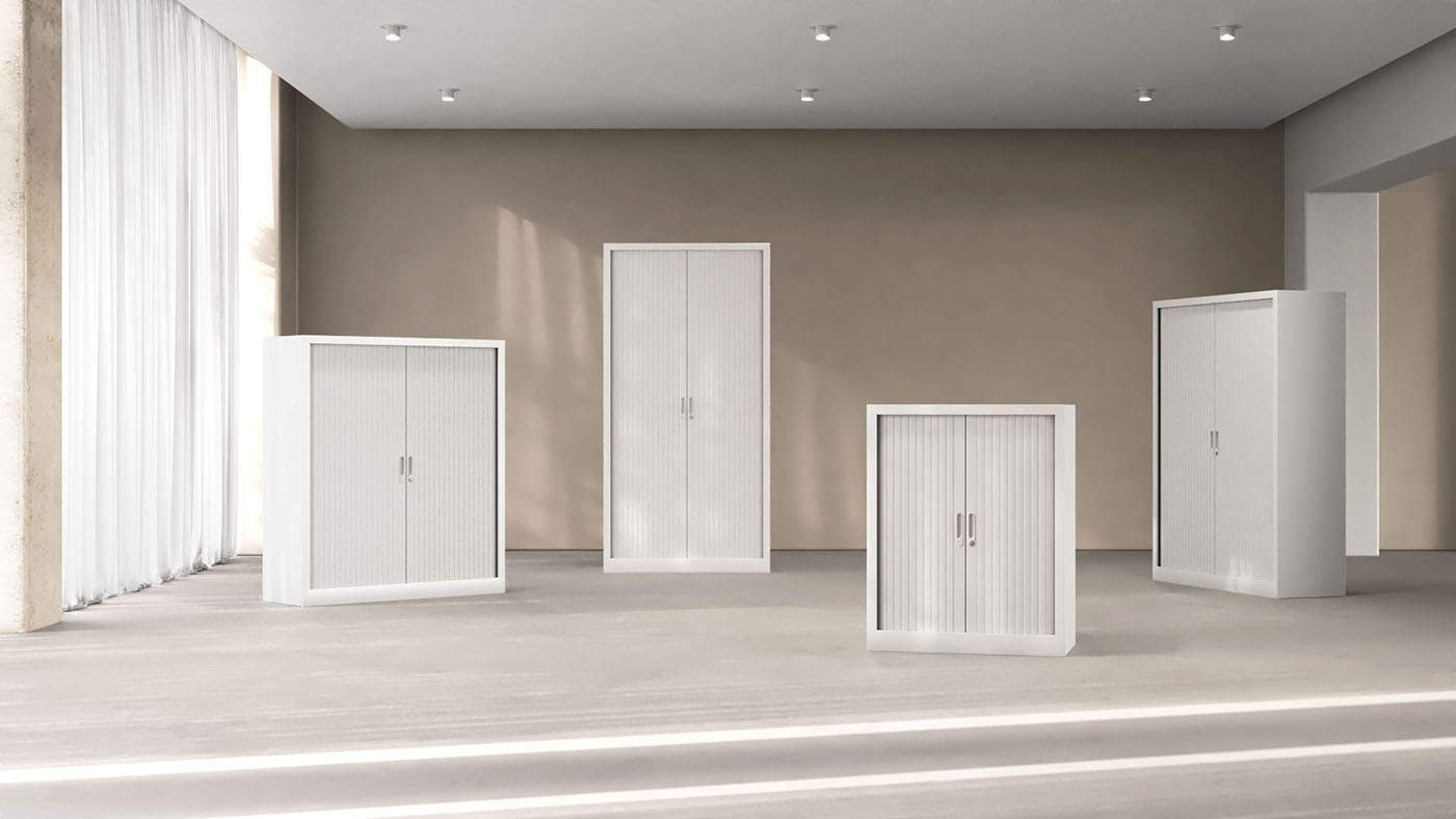 La gama incluye distintos sistemas de cierre y apertura, como puertas persiana ignífugas, puertas batientes de melamina y archivos telescópicos con extracción total y sistema antivuelco. Estas soluciones optimizan el acceso, el orden y la ergonomía en el entorno laboral.