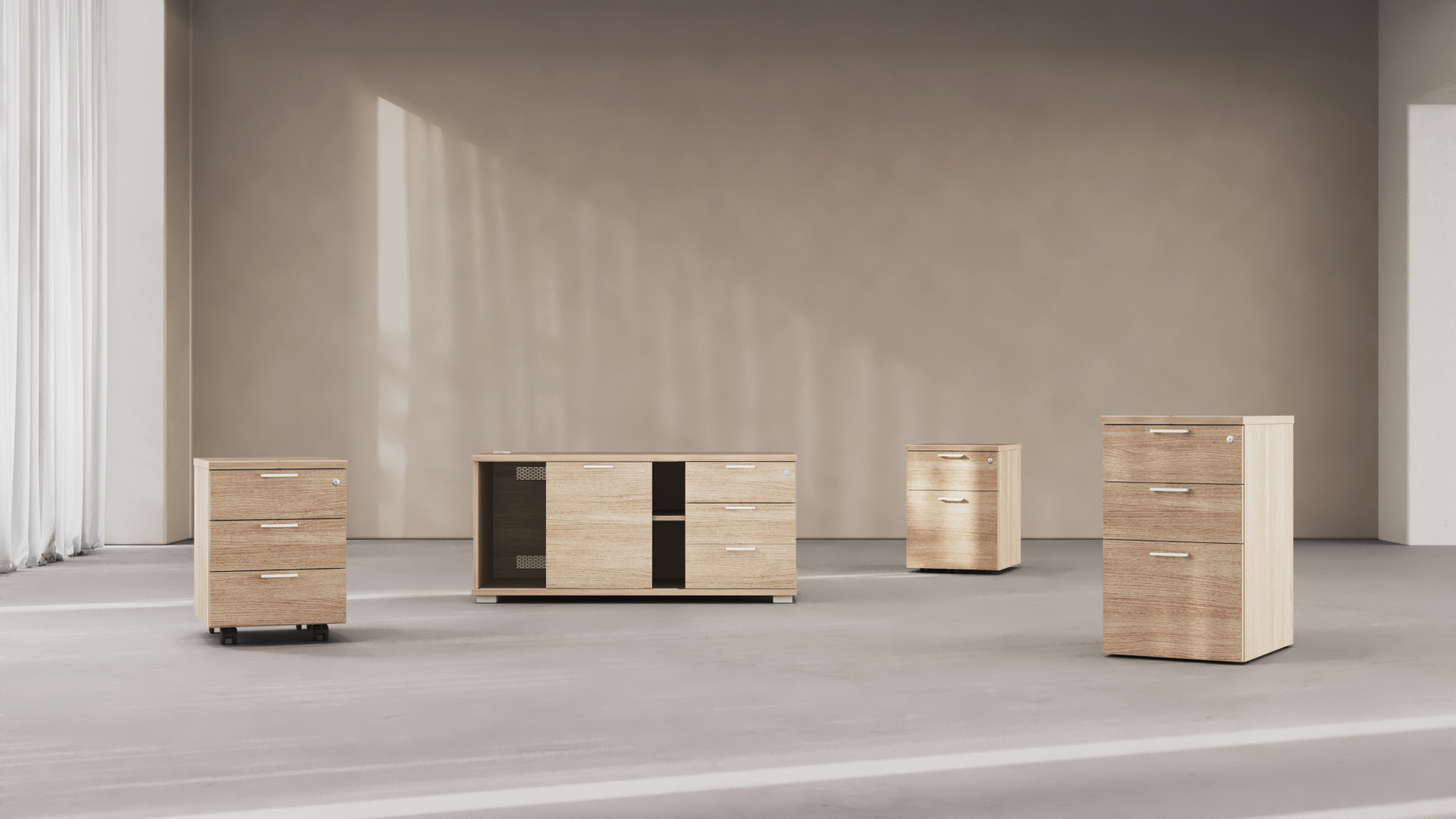 Disponibles en una amplia gama de acabados melamínicos, las cajoneras OH Systems se integran fácilmente en cualquier entorno corporativo. Además, cumplen con la normativa UNE-EN aplicable y criterios de calidad, ecodiseño y sostenibilidad.