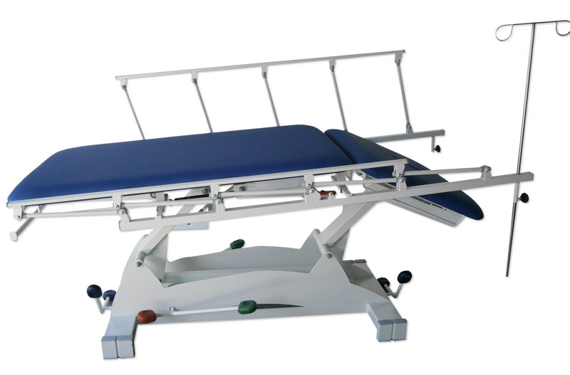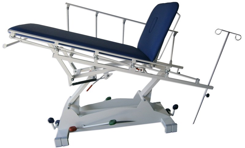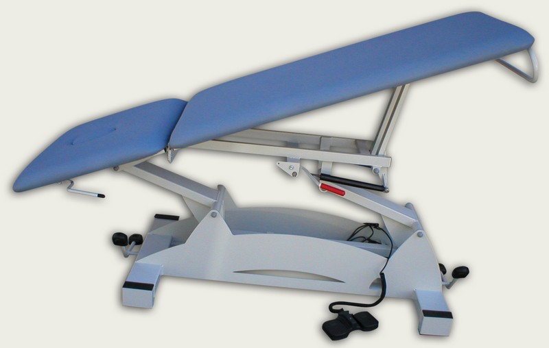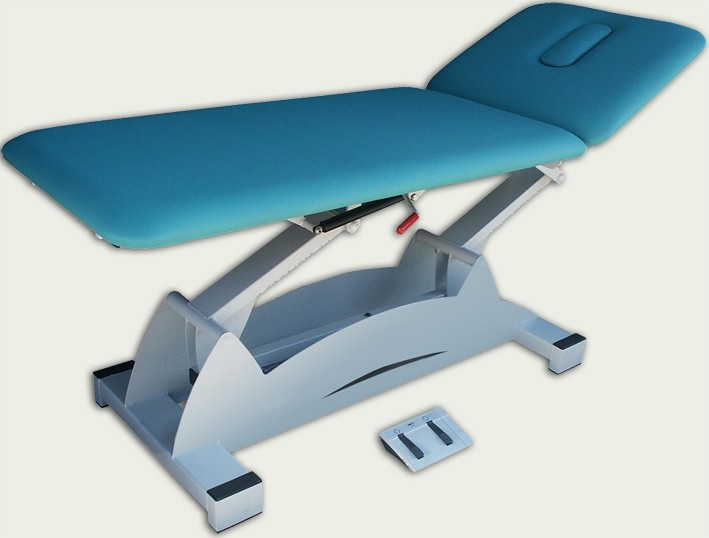 Camilla de 2 cuerpos solo respaldo movible, para exploración, reconocimiento, masaje y/o tratamiento de pacientes. Estructura de gran robustez y durabilidad en acero pintado al horno en EPOXI-POLIESTER. Lecho 2 cuerpos con respaldo abatible dos versiones: por enclave palanca bilateral, o por cilindro de gas (G) palanca bilateral, cuerpo inferior fijo, sin trendelemburg. Elevación en altura dos versiones: hidráulica (H) en pedal bilateral con pedal de descarga, o eléctrica (E) en pedal de suelo u opcional accionamiento periférico. Sistema “4×4” de rigidez aumentada con 2 compases motrices y corazas laterales de acero enterizas, para mejor limpieza y estética. Rodamientos de fricción de Nylon sin “chirridos”. Dos versiones de rodadura: sin ruedas, o con ruedas para mover camilla con paciente, sistema centralizado en pedal en ambos extremos de la mesa, solo necesario accionar en uno de los lados. Tapizado técnico vinílico (PVC/Poliéster, 650 gr/m2.) con resistencia a la abrasión, transpiración, saliva, sangre, orina, luz UV, aceites y manchas. Resistencia a altas y bajas temperaturas. Protección antimicrobiana, antibacteriana y antimicótico. Ignífugo M2 y lavable. Impermeabilidad. Portarrollos de papel de serie. Orificio facial y tapa.