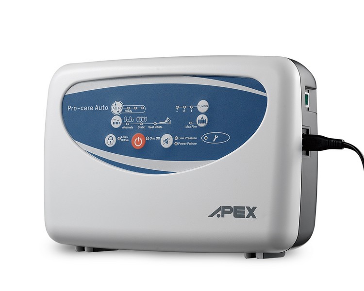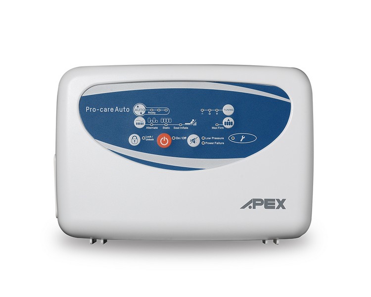 El Pro-care Auto es un colchón de reemplazo con tres tipos de terapia: Terapia de presión alternante, terapia de baja presión alternante y Terapia de baja presión continua.