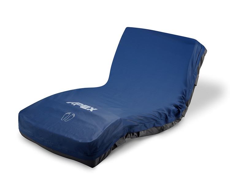 Celdas patentadas Apex fabricadas en poliuretano para reducir la fricción y con forma rectangular para una mejor redistribución de la presión en la zona del sacro. Máxima eficacia terapéutica, gracias a la altura de sus 20 celdas (20,32 cm). Tecnología celda sobre celda que favorece la inmersión y protege al paciente en caso de fallo eléctrico. Fácil limpieza al no incluir foam.
