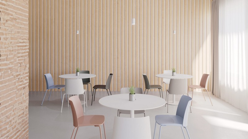 Una mesa mesa pensada y diseñada para adaptarse a diferentes estilos de entornos como cafeterías, salas de espera o zonas de trabajo informal.