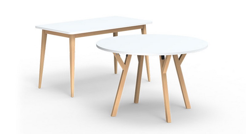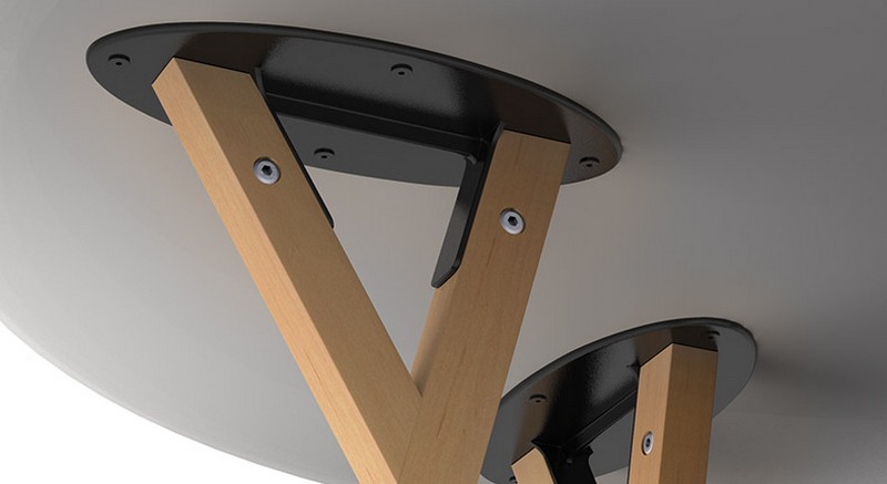 Mesa polivalente con estructura de madera.