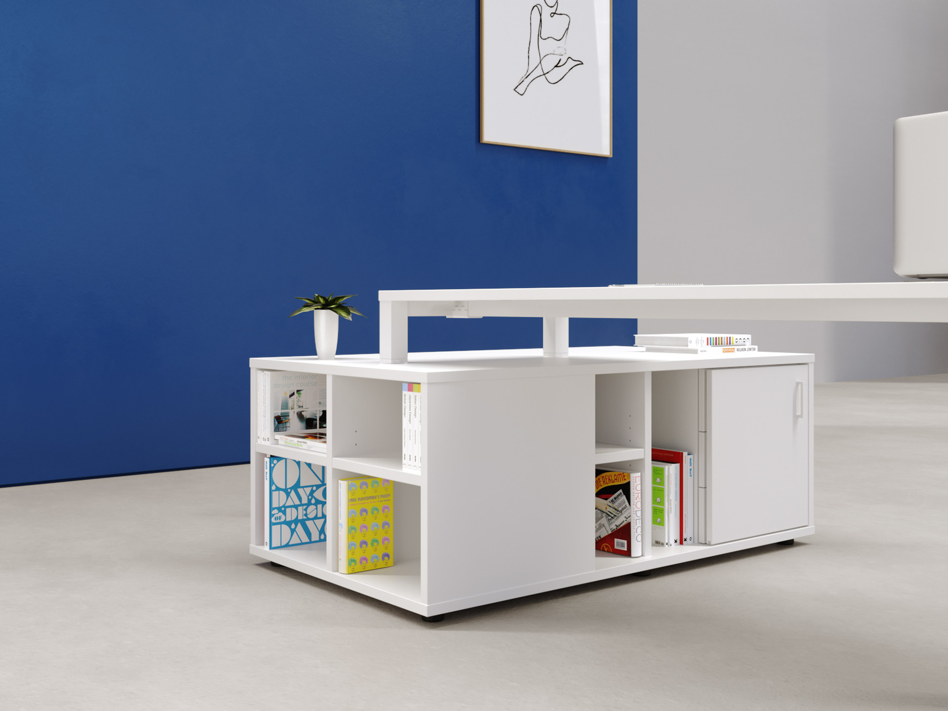 Su diseño moderno y su concepto vanguardista renuevan la estética de todos lo estilos de mobiliario sirviendo, además, como limitador del espacio. Las diversas dimensiones, y estructuras con cajones, estantes y puertas abatibles o correderas convierten al maux NHB en un elemento indispensable de oficina.