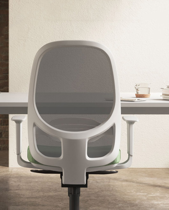 La silla NOMAD incorpora respaldo en malla-espuma de poliéster, disponible en color negro o gris, con un marco de poliamida reforzado con fibra de vidrio que garantiza una correcta sujeción de la espalda y una adecuada transpirabilidad. Integra un soporte lumbar regulable en altura (6,5 cm), favoreciendo una postura saludable durante la jornada laboral.