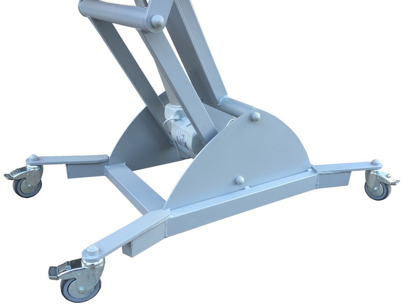 Elevación en altura eléctrica mediante pedal de suelo con Trendelemburg simultaneo en posición elevada. Sistema “4×4” de rigidez aumentada con 2 compases motrices y corazas laterales de acero para mejor limpieza, estética y estabilidad. Rodamientos de fricción de Nylon sin “chirridos”.